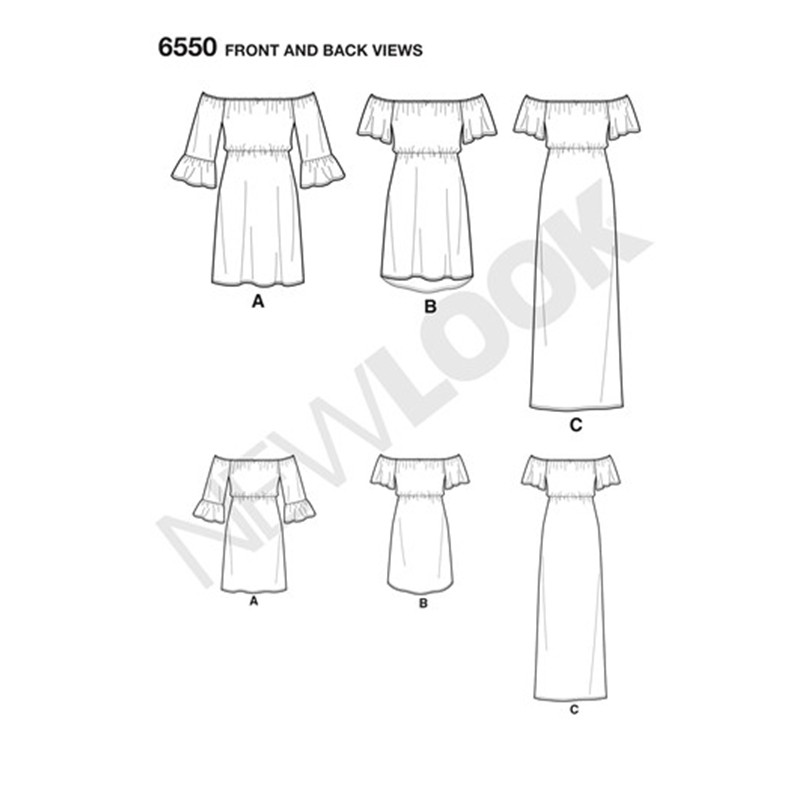 Off The Shoulder Dress Sewing Pattern For Woman New Look 6550