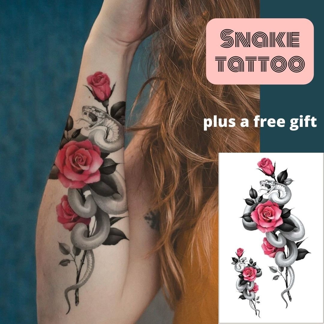 Buy Snake Tattoo Rose Temporary Tattoos Women Large Temporary Online In India Etsy